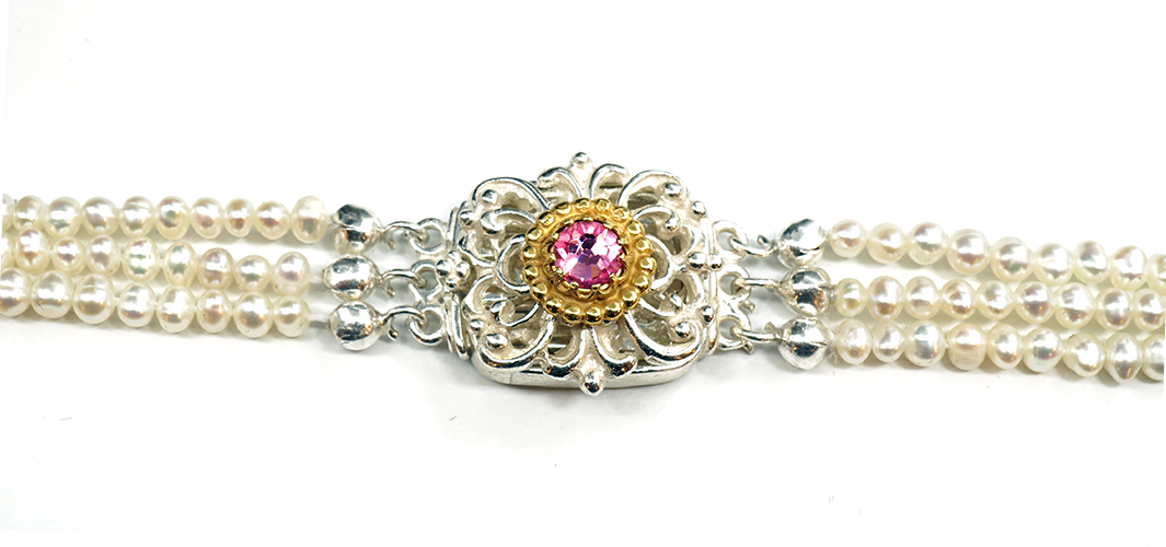 Sie wählen aus unserem Sortiment eine passende Schließe aus und wir fädeln sie nach Ihren Wünschen.